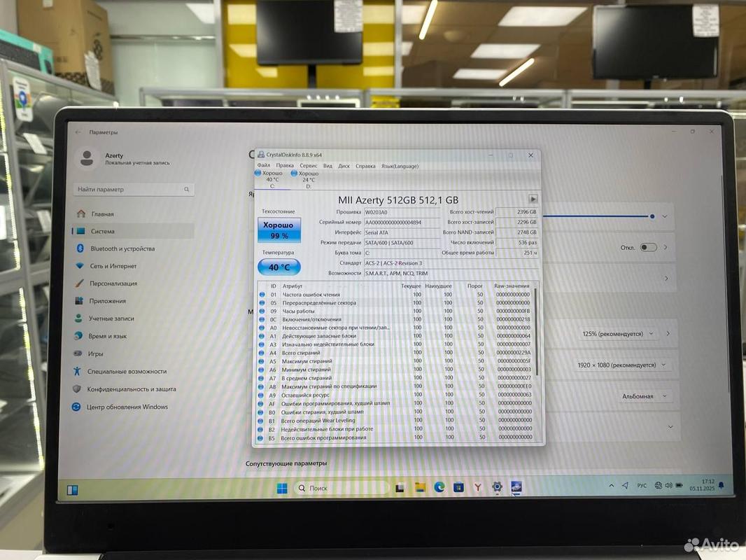 Жеcткий диск: SSD 512Gb+HDD 500Gb