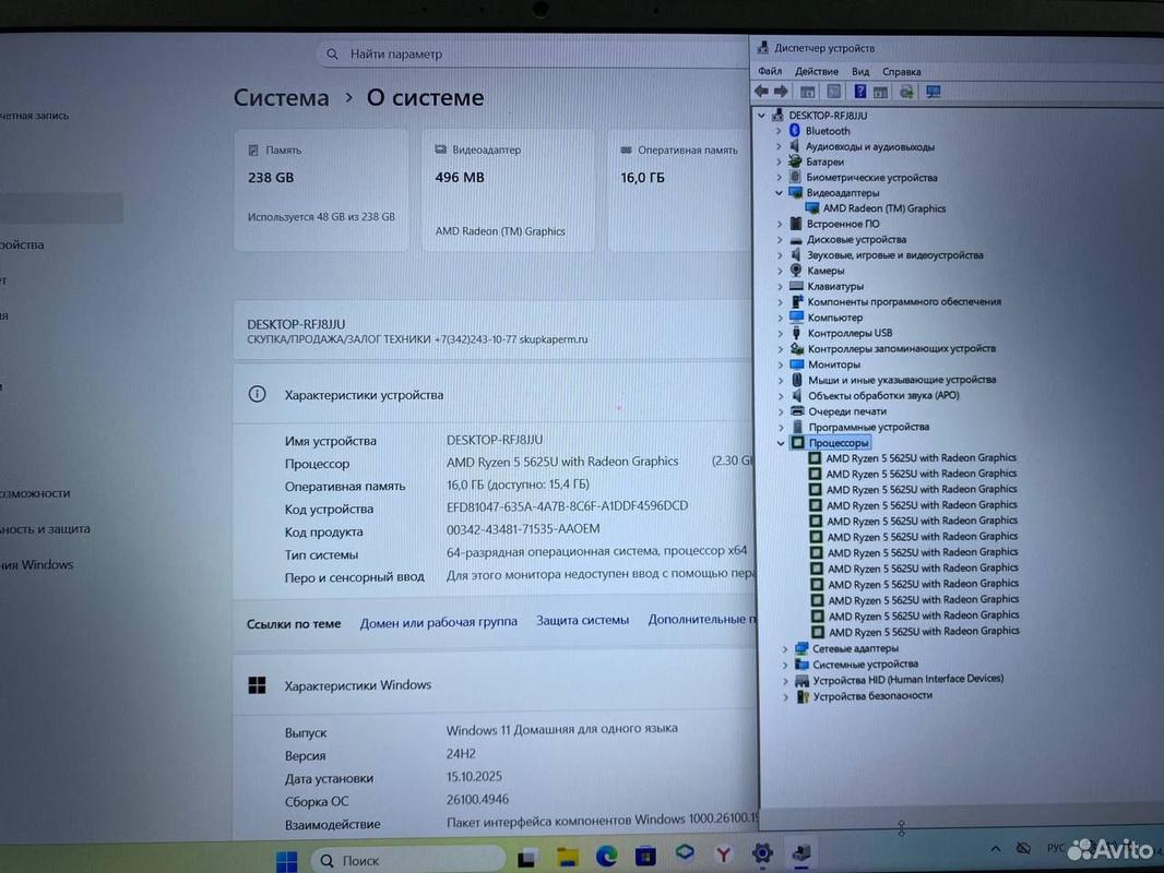 Процесcоp: AMD Ryzen 5 5625U 4.3Ghz