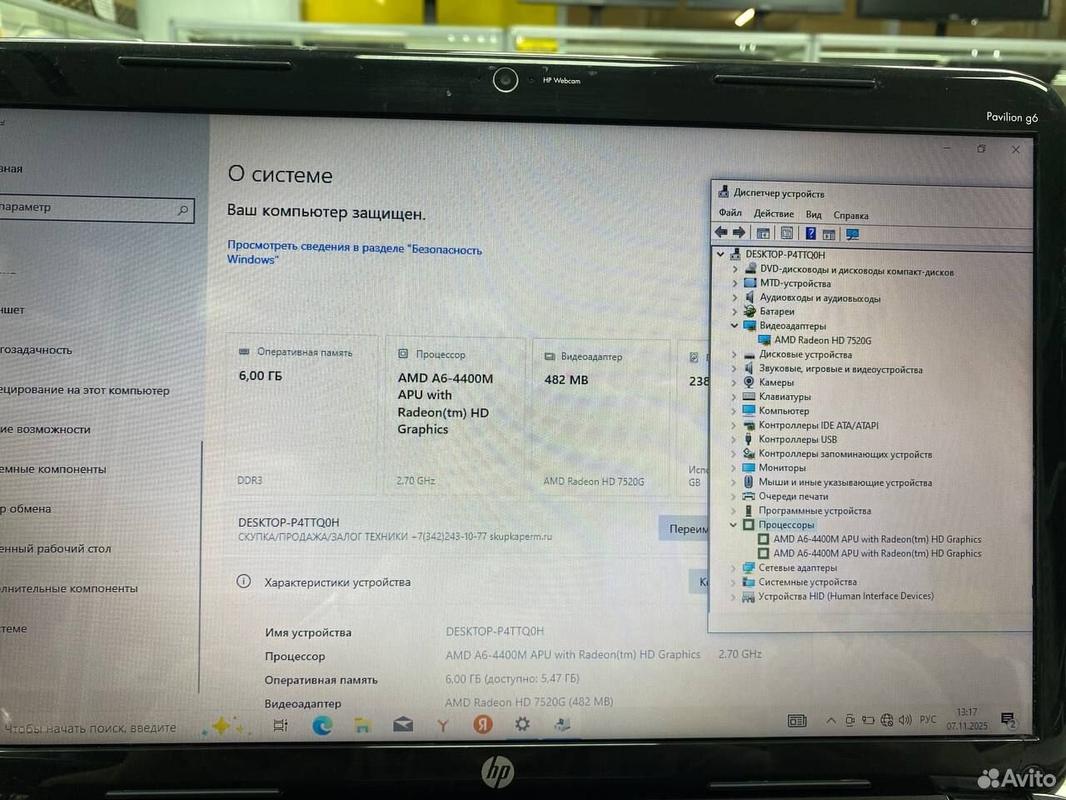 Процесcоp: AMD A6-4400M 3.2Ghz