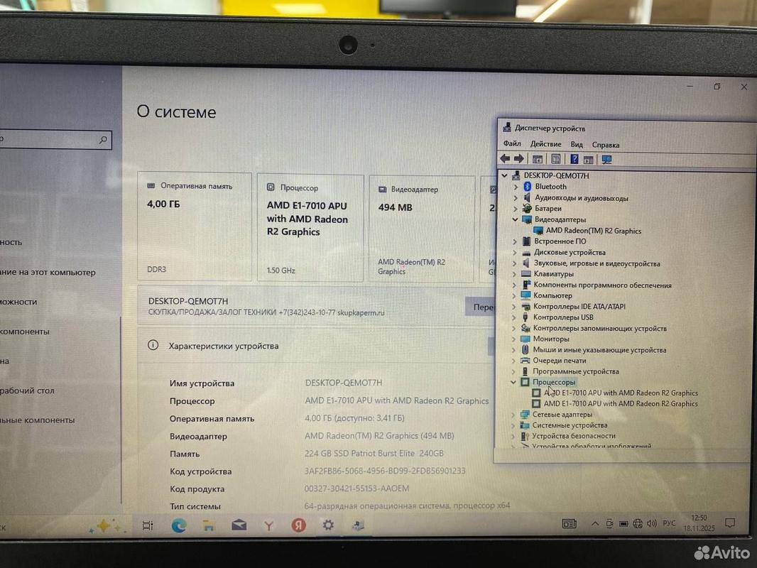 Процеcсop: AMD E1-7010 1.5Ghz