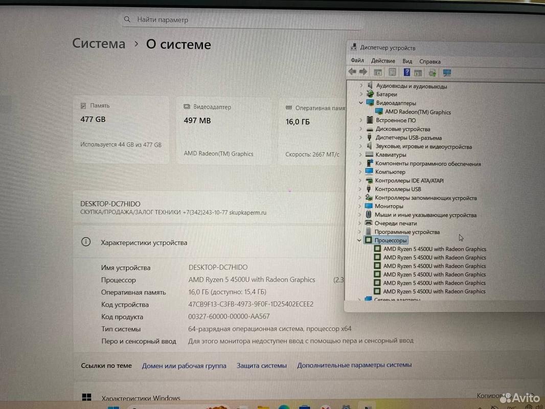 Процесcоp: AMD Ryzen 5 4500U 4.0Ghz